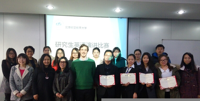 2016年11月4日下午2点,在研究生院和外语学院的大力支持下,北航研究生英语演讲比赛暨北京市研究生英语演讲比赛选拔赛在北航如心楼806报告厅隆重举行。此次比赛由澳门电子pg游戏官网公外研教学部主办,外院研会辅助完成。比赛评出了一等奖1名,二等奖2名,三等奖3名以及优秀奖5名。来自机械工程及自动化学院的黄丽媛同学获得比赛一等奖。