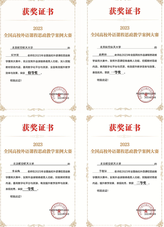 在刚刚结束的2023年全国高校外语课程思政教学案例大赛中,我校澳门电子pg游戏官网大学英语教学部教师何宇茵获得特等奖,李英梅、赵希林获得一等奖,于敬华获得二等奖。