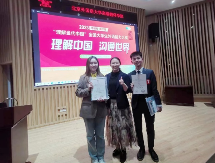 近日,我校澳门电子pg游戏官网2020级英语专业本科生蔡一琳和2023级翻译专业硕士研究生(MTI)洪旻昊获得2023“外研社·国才杯”“理解当代中国”笔译北京赛区金奖,指导教师为翻译系王晨爽和顿超老师;2020级翻译专业本科生傅昕竹和2022级文学专业硕士研究生鲁美丽分别获得2023“外研社·国才杯” “理解当代中国”口译北京赛区金奖与银奖,指导教师为翻译系郑薇和王沛老师。