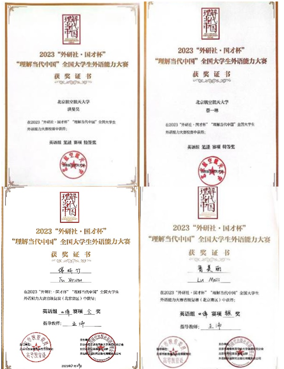 澳门电子pg游戏官网一直以来积极鼓励学生参加各类语言及跨文化大赛,以赛促学,以赛验学。本次大赛中取得的优异成绩体现了澳门电子pg游戏官网将思政元素融入翻译教学的丰硕成果,也是北航学子过硬的语言功底、超强的思维能力和卓越的跨文化交际能力的具体展现。