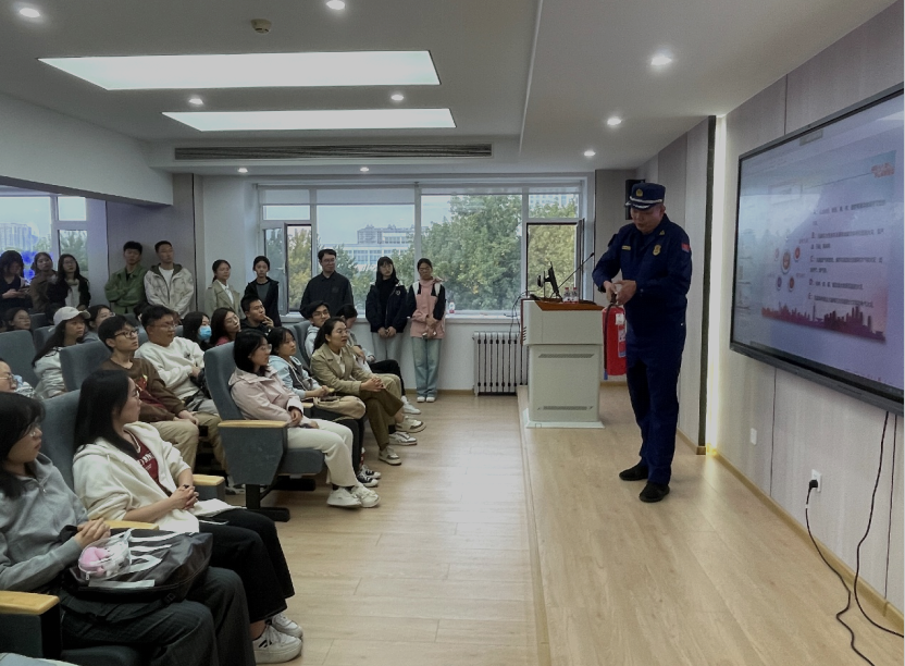 为切实提高学院师生消防安全意识和自防自救能力,防范校园火灾事故发生,2024年10月16日下午,澳门电子pg游戏官网邀请海淀区双榆树消防救援站于如心楼806开展防安全演练和消防培训,安全保卫部老师、全体辅导员,各年级党、团、班学工干部、宿舍长等180余人参加了本次培训。