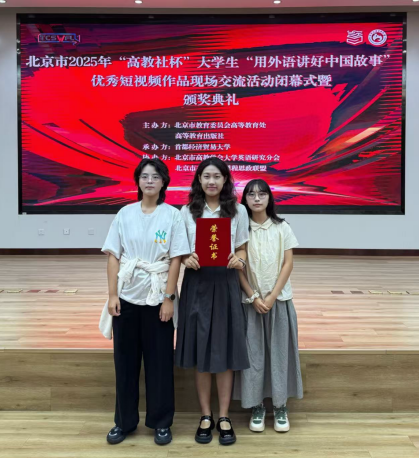 由北京市教育委员会高等教育处联合高等教育出版社、北京市高教学会大学英语研究分会和北京市高校外语课程思政联盟举办的“‘用外语讲好中国故事’优秀短视频作品征集活动”近日圆满落幕。我校2024级本科生林墨涵团队(林墨涵、彭玺樾、吴米缇)(按首字母顺序排名)的视频参赛作品《星际密码:当三体星座遇上AI》斩获北京市二等奖。该视频以三体计算星座的热点引入,以古今对比的方式呈现了现代科技创新对于智慧农业发展的重大意义,并与敦煌观星的传统文化相结合,诗意地展望了中国航空航天事业的未来。