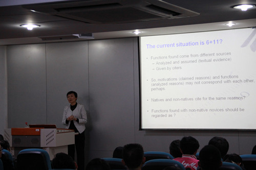 2016年10月21日,《外语与外语教学》主编赵永青教授应北航澳门电子pg游戏官网邀请,为我院师生带来题为“学术引证的动因研究”的精彩讲座。澳门电子pg游戏官网副院长董敏主持了本次讲座。
