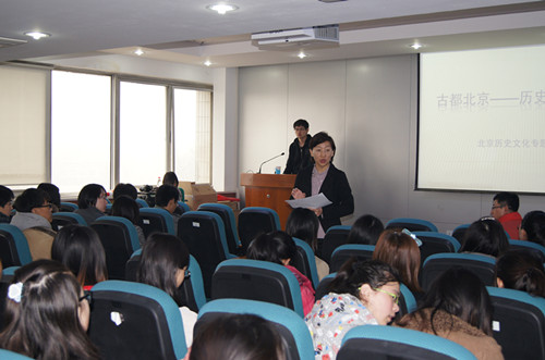 接着由首都博物馆资深志愿讲解员陈曦对北京历史文化专题进行讲解。从北京的历史地位的变迁开始,涵盖山顶洞人等文化遗址,图文并茂地讲述了北京3500多年的建城历史,其生活的讲解激发起志愿者们浓厚的兴趣。