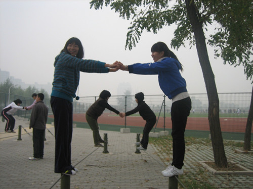 最后,教练带大家体验了“双人走钢丝”以及单人踩柱向前走的活动。这个是对我们默契与合作能力的一种考验。不少同学在半中间落地,但他们毅然重新开始奋勇向前,体现了一种不屈不挠的精神,感人至极!