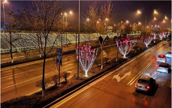 “火树银花不夜天”用来形容太原十分形象:临近2019年春节,为营造祥和的节日气氛,太原市提出了“锦绣太原、光筑龙城”的亮化主题活动。龙城的大街小巷都采用树冠吊挂彩灯,树干缠绕灯带的方式,展现出色彩缤纷,活力四射的城市形象,也体现出太原接纳和包容的城市态度,营造出生机勃勃的景象。