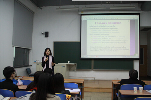 Professor Liu’s report was warmly welcomed and was spoken highly of by those who were present. Professor Liu got her PhD in cognitive science from University of Colorado in 1993 and is now the head of Department of Linguistics and Translation, City University of Hong Kong. Her research orientations are functional syntax, lexical semantics, corpus linguistics and cognitive linguistics.